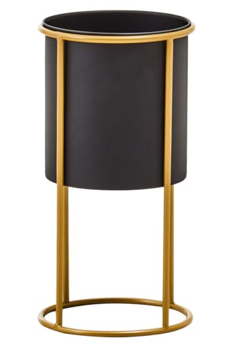 Premier Housewares Small Black And Gold Floor Standing Garden Planters Modern Freestanding Plant Pot with Luxe Gold Frame Tall Planters For Outdoor 20cm x 38cm x 20cm