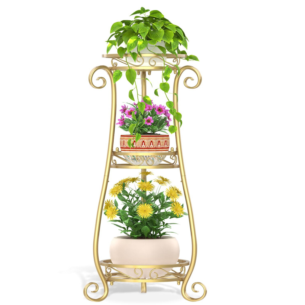 VASZOLA 3 Tier Gold Metal Plant Stand for Multiple Large Planters Indoor Outdoor Organizer, Heavy Duty Tall Flower Stand for Corner Patio Bathroom