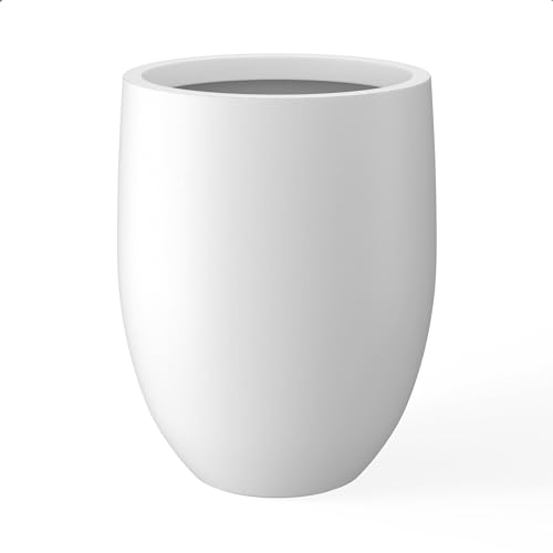 Kante Concrete Round Tall, Outdoor Indoor Modern Planters Pots for Balcony Garden Patio Deck, White, 21.7" H