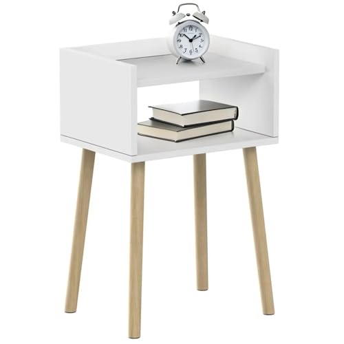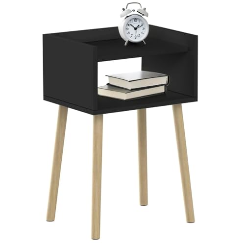 WDSHIYI Mid Century Modern Nightstand, Wood Bedside Table, Tall End Side Table with Open Storage Shelf, Small Night Stand for Bedroom, Small Spaces
