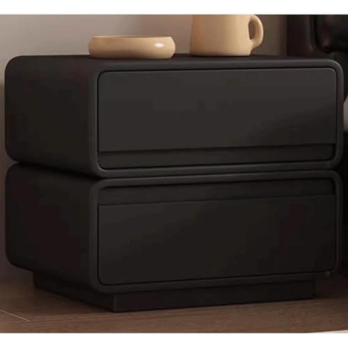 WxuuLTGJR Simple Nightstand 2 Drawers Solid Wood Bedside Table with Microfiber Leather Bedside Cabinet 19.68in Tall Side Table Sturdy(Nero,19.7in)