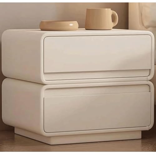 WxuuLTGJR Simple Nightstand 2 Drawers Solid Wood Bedside Table with Microfiber Leather Bedside Cabinet 19.68in Tall Side Table Sturdy(Beige,19.7in)