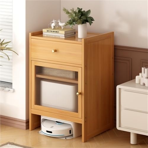 SMGCEHC Robot Vacuum Storage Cabinet, Modern Bamboo Side Cabinet with Doors, 31.7-Inches Tall Storage Side Table with Adjustable Shelf & Drawer for Living Room & Office Decor(Beige)