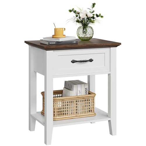Aptliton 60cm Bedside Table with Drawer, Tall Slim Telephone Table, Nightstand Chest of Drawers Cabinet, End Table Corner Side Table for Living Romm, Bedroom, Hallway, Study Rooms, Offices, White