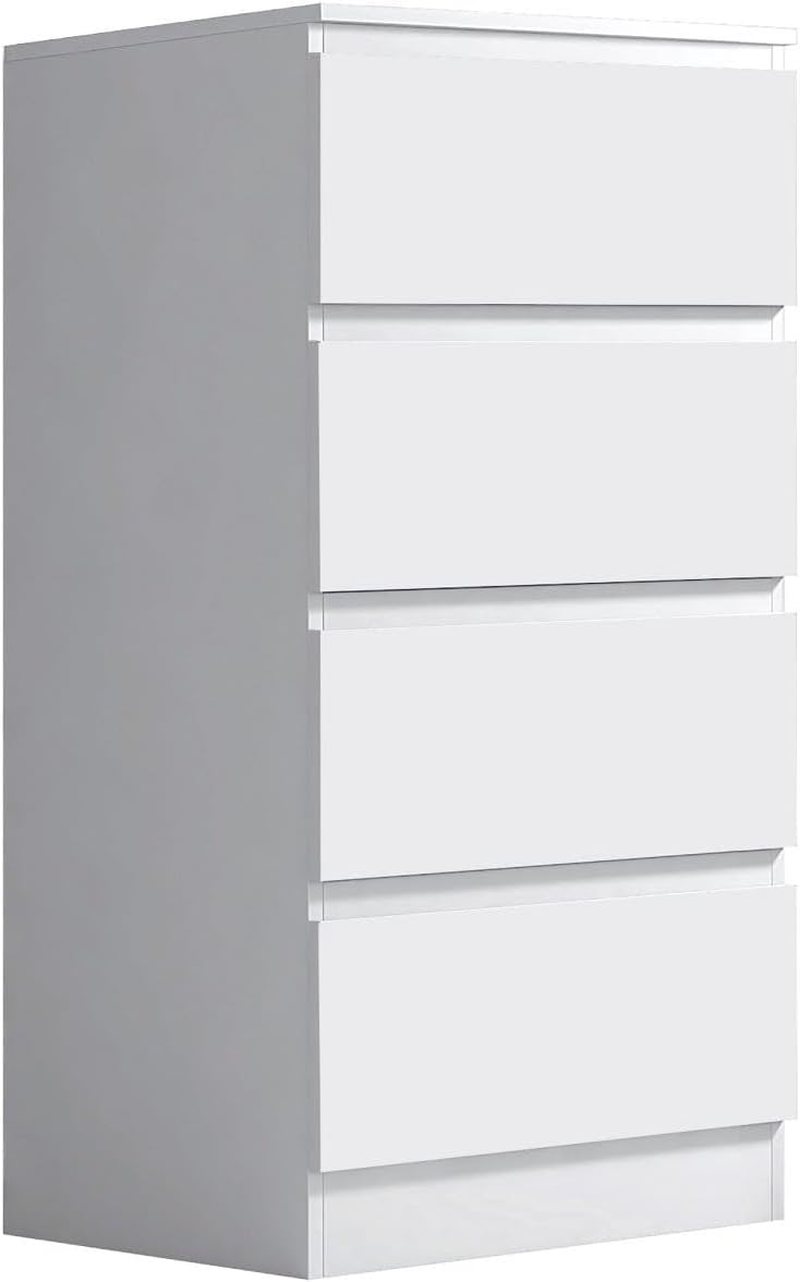 FWStyle Modern Bedroom Furniture Chest of Drawers, Slim Tall 4 Drawer Chest, White Gloss
