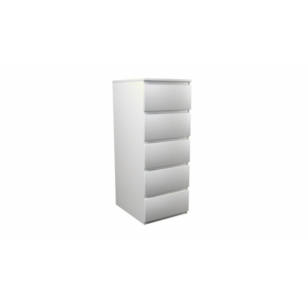 (5 Tall Boy Slim) MODERN - White Chest Of Drawers Bedroom Furniture Storage Bedside 2 to 8 Drawers