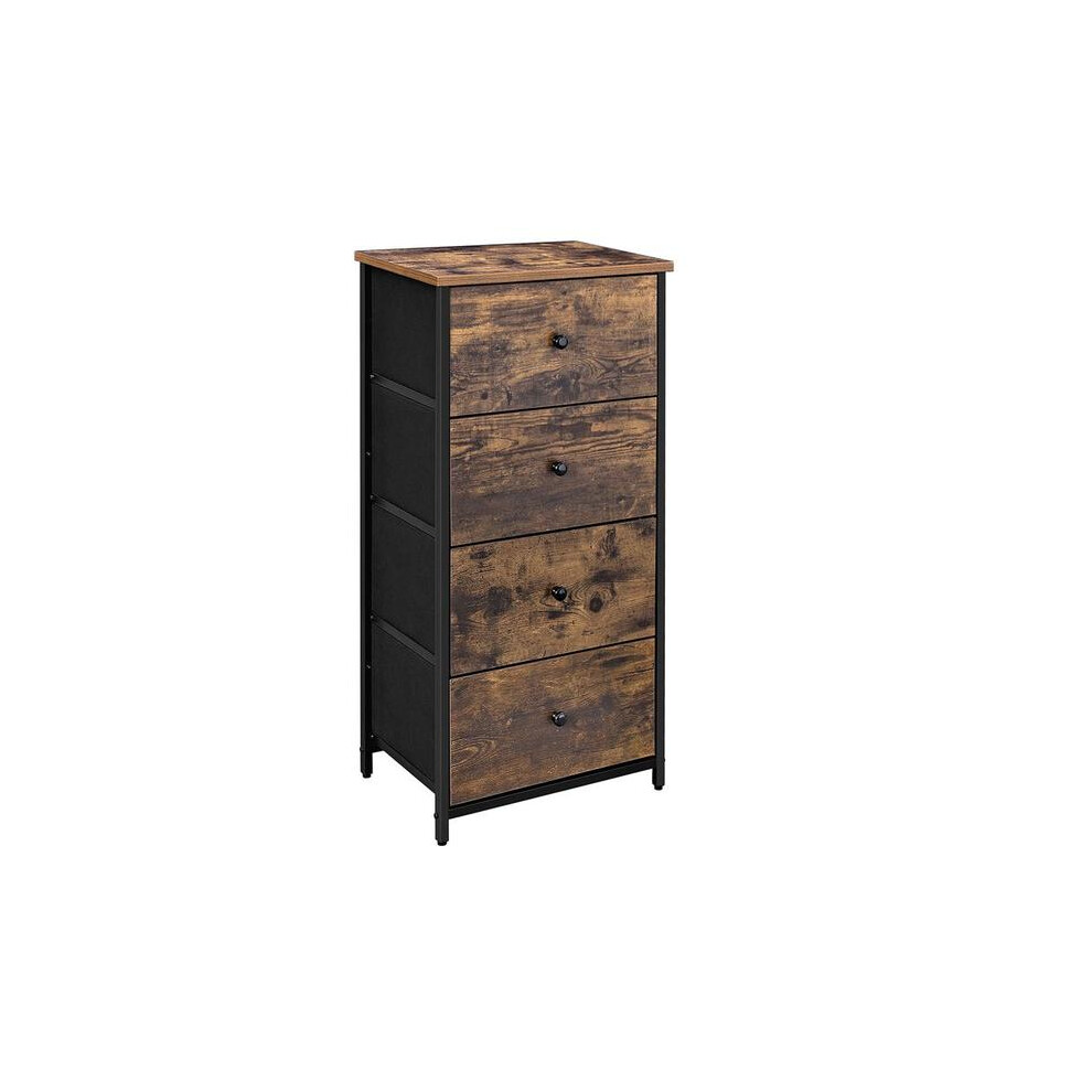 (Rustic Brown) SONGMICS HOME Chest of Drawers Bedroom, Drawer Storage Unit, Dresser with 4 Fabric Drawers, Metal Frame, Tall and Slim, for Closet