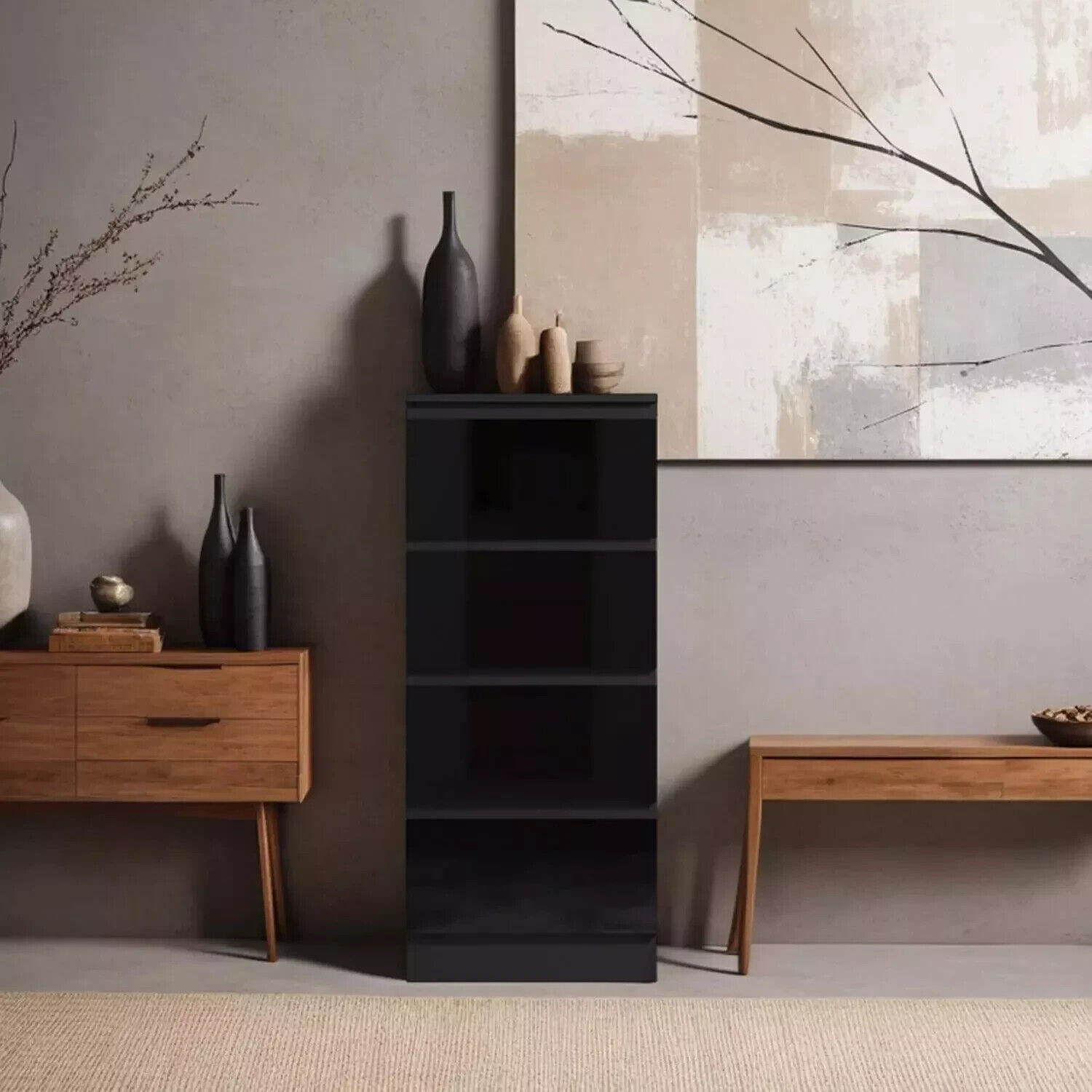 Black 4 Drawer Chest Of Drawers Bedside High Gloss Tall Slim Scratch Resistant