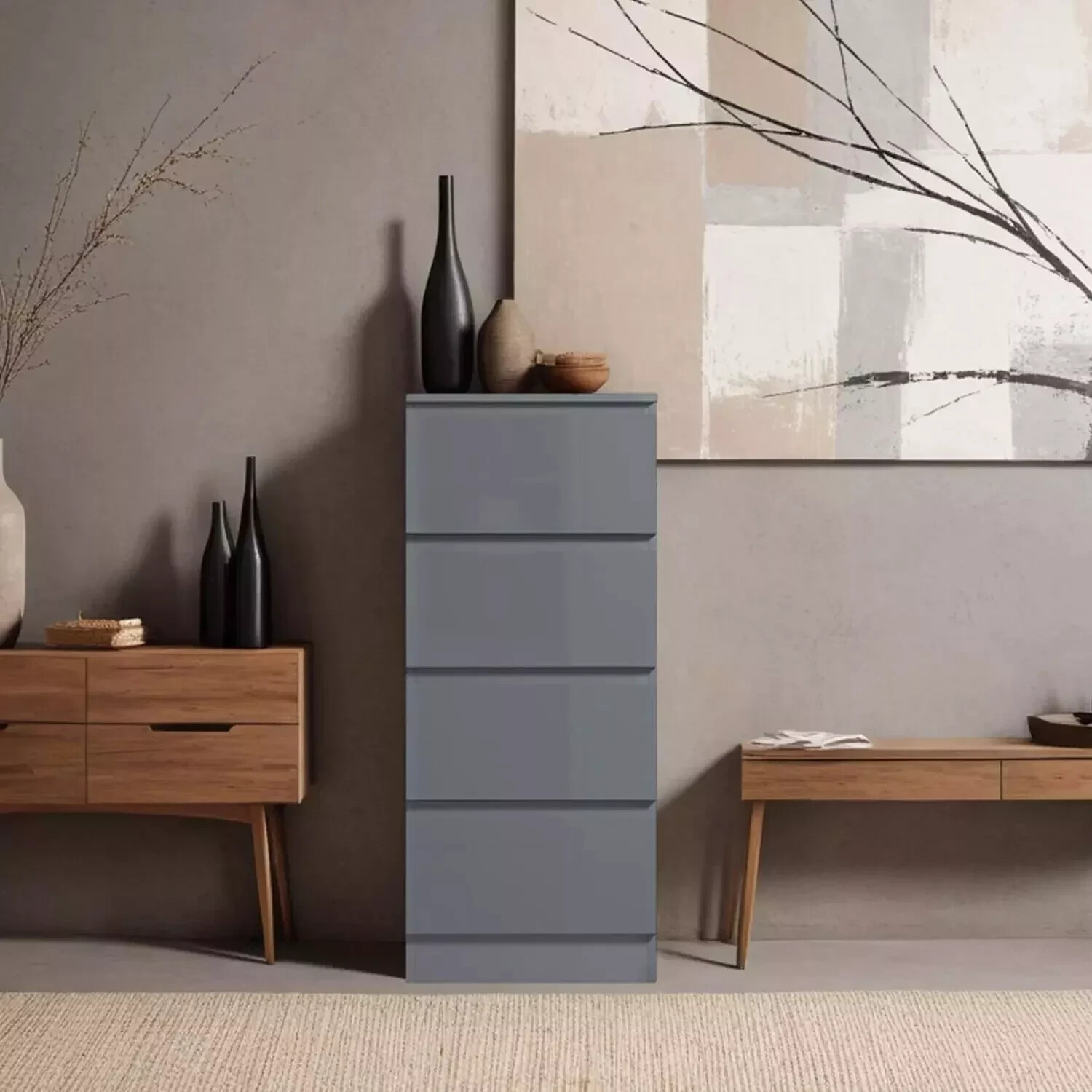 4 Drawer Chest Of Drawers Grey High Gloss Bedside Tall Slim Scratch Resistant