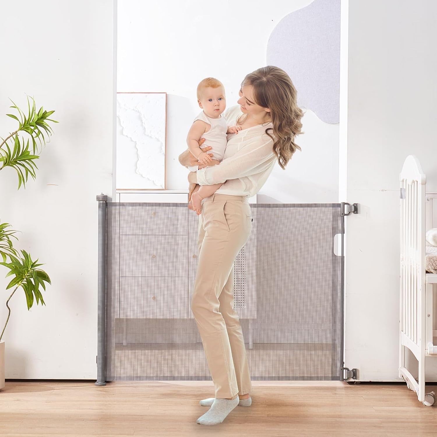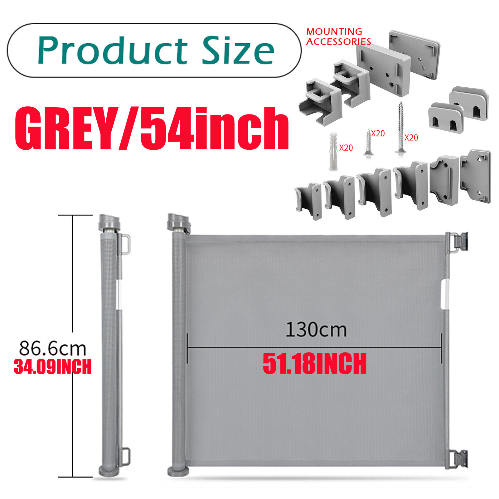 derimkcoa Retractable Stair Gate for Baby,Mesh Baby Gate or Mesh Dog Gate,86cm Tall,Extends up to 140cm Wide,Child Safety Gate for Doorways, Stairs, Hallways, Indoor/Outdoor, Grey