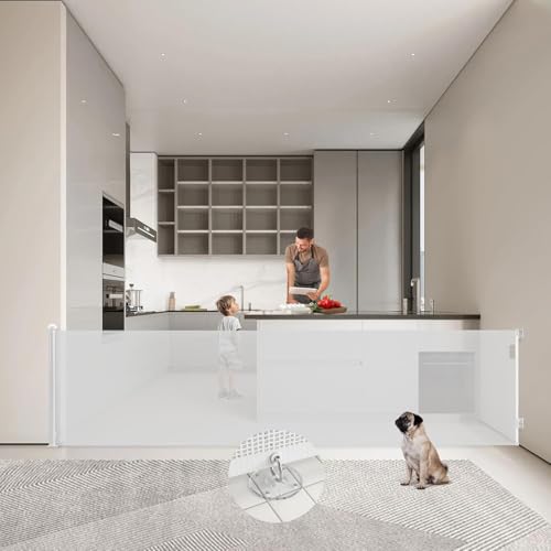 derimkcoa Retractable Stair Gate for Baby,Mesh Baby Gate or Mesh Dog Gate,86cm Tall,Extends up to 140cm Wide,Child Safety Gate for Doorways, Stairs, Hallways, Indoor/Outdoor, White