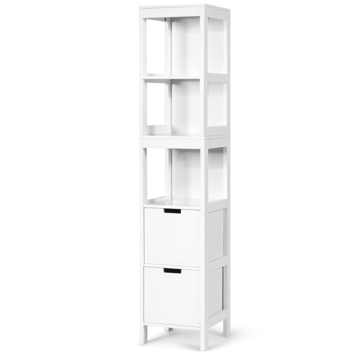 5-Tier Bathroom Tall Cabinet Storage Organizer Rack Stand Cupboard 2 drawers