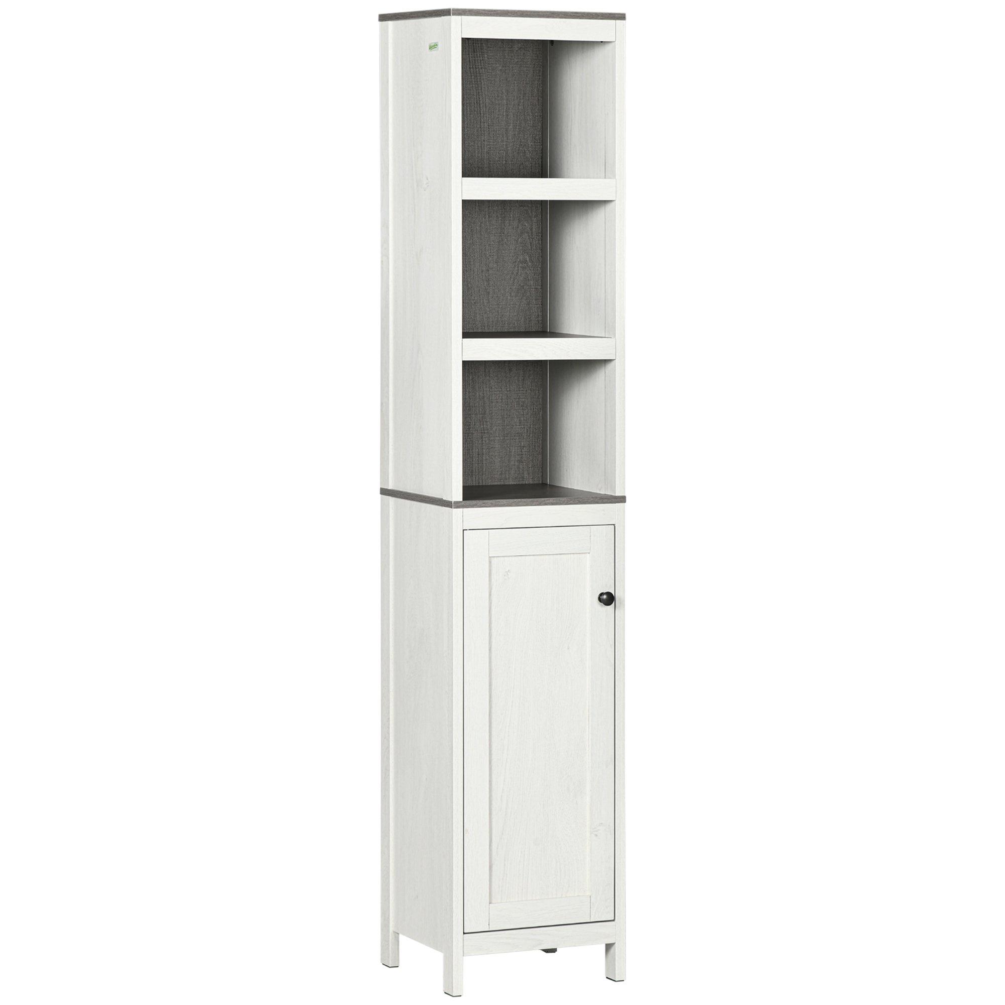 White Tall Bathroom Cabinet Storage Unit Slim Tallboy Cupboard Door Shelves NEW