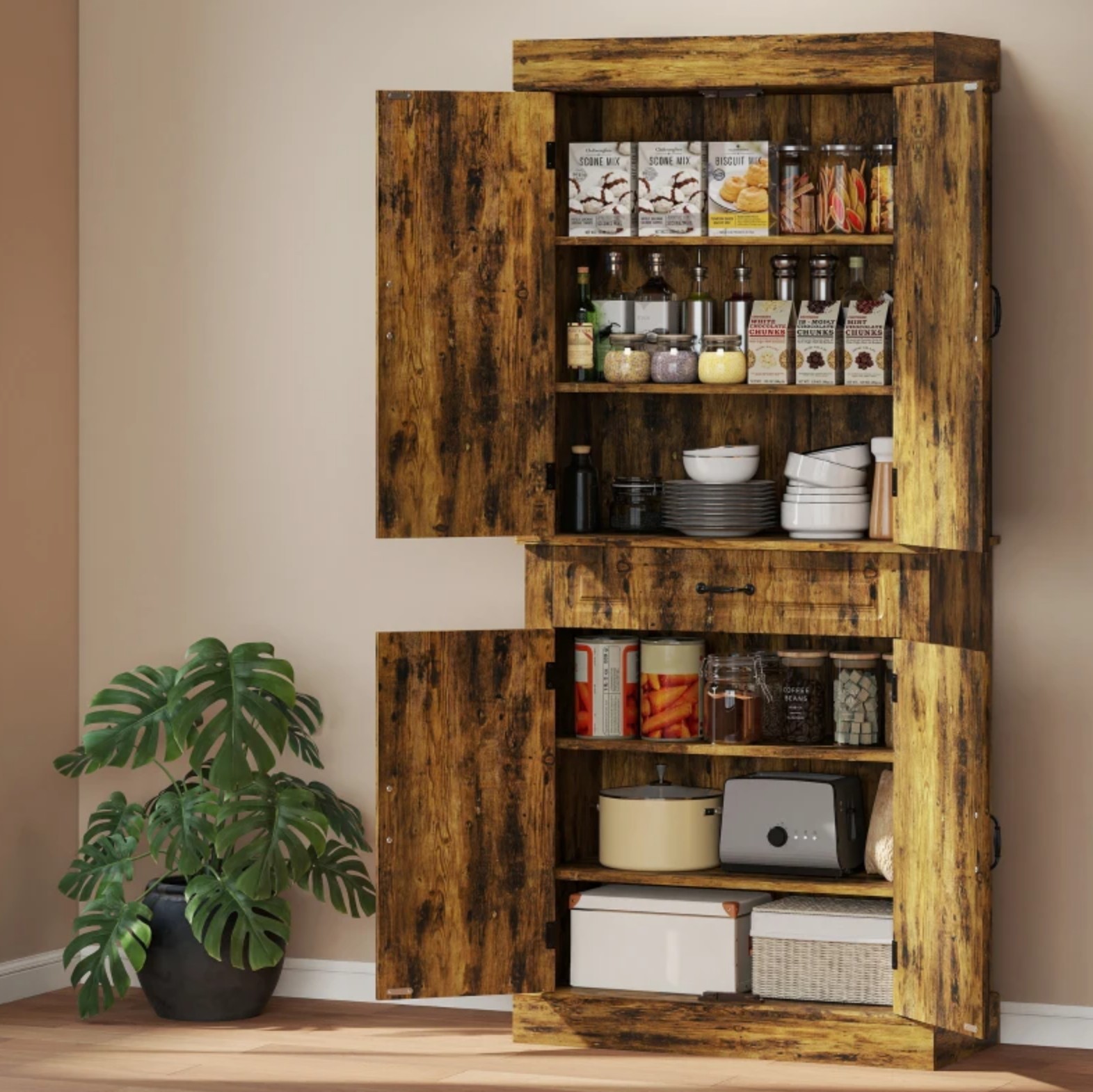 Tall Kitchen Storage Cupboard Cabinet Pantry Freestanding Unit 1 Drawer 4 Doors