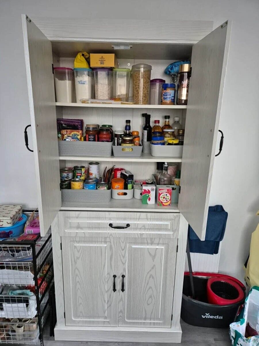 Tall Kitchen Storage Cupboard Cabinet Pantry White Utility Unit Furniture Larder
