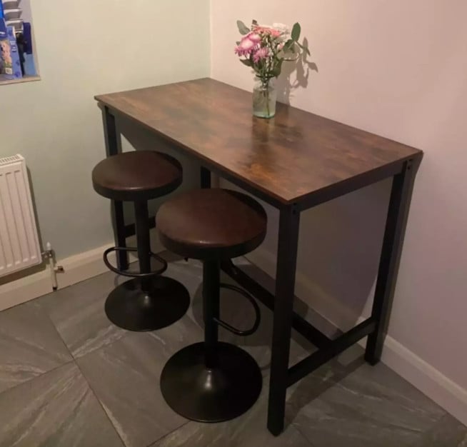 Tall Breakfast Bar Table Industrial Cafe Kitchen Dining Room Furniture Modern