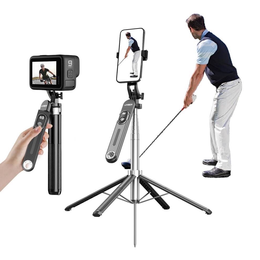 71' Tall Phone Tripod with Wireless Remote, 360 Rotating Handle, Foldable Selfie Stick for Golf and Outdoor Use S25NBlack