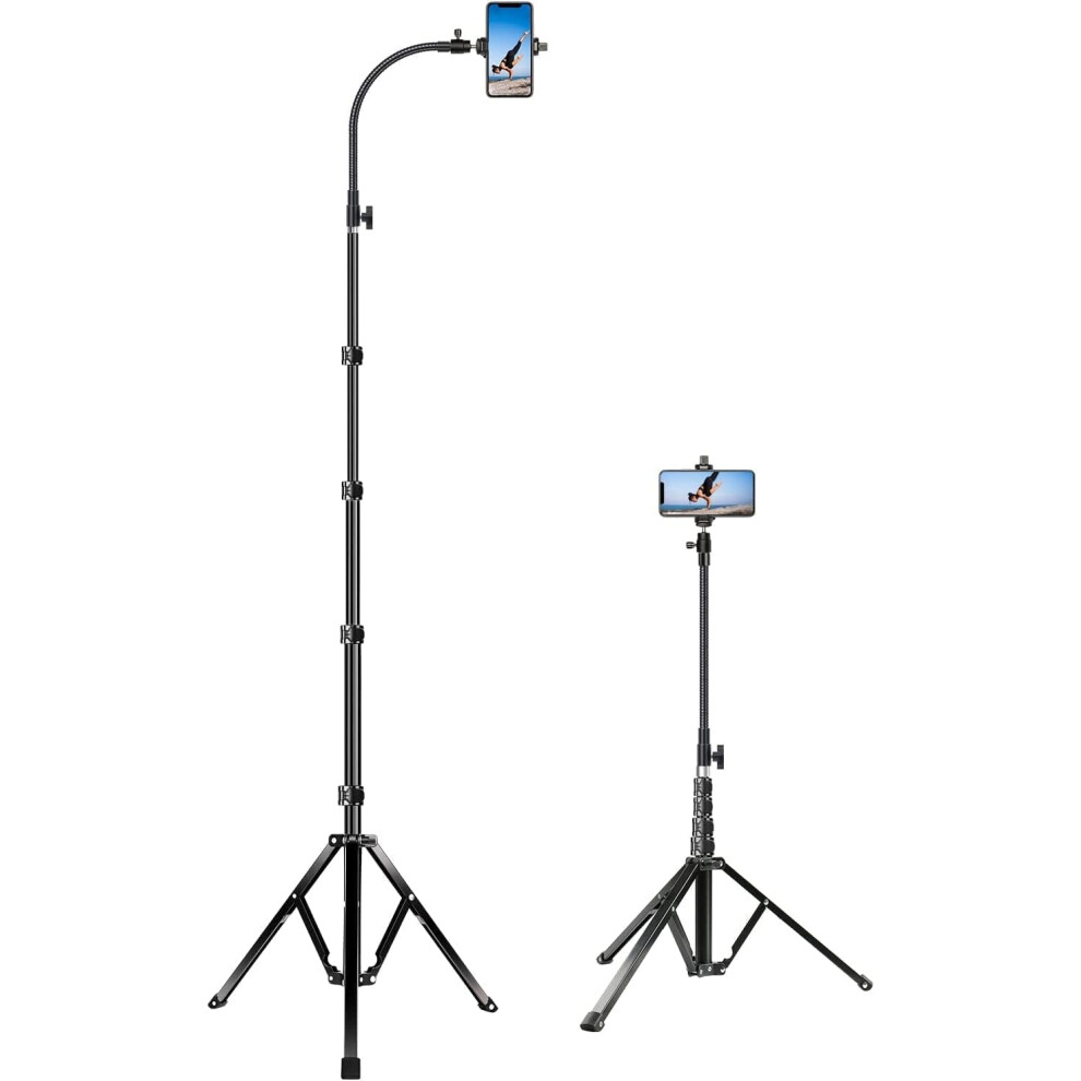 77.5" Tall Tripod for Smartphone, Overhead Phone Tripod Stand with Flexible Goos