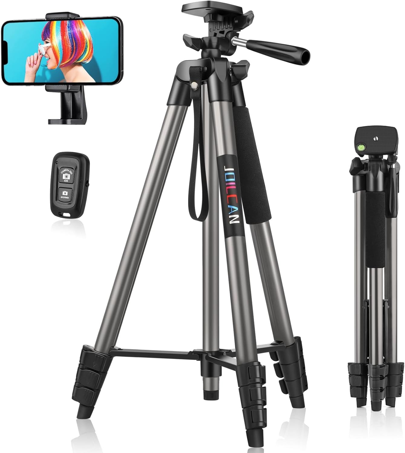 JOILCAN 63" Tall Tripod with Wireless Remote, Aluminum Extendable Phone Stand &