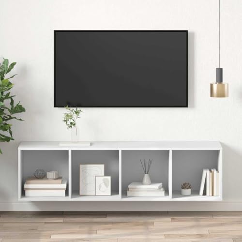 Qnhdfrt Floating Tv Unit White 152x22x113 cm Engineered Wood Tall Modern Tv Cabinet With Storage for Living Room Bedroom