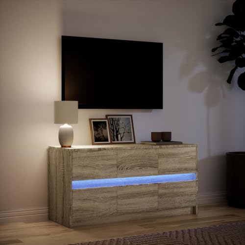 Homvdxl 100cm LED TV Stand for 50" TVs, Tall LED TV Cabinet Entertainment Centre with 6 Drawers, Modern Media Console Sideboard for Living Room, Oak+Rustic