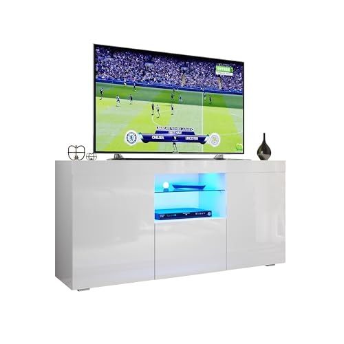 Dripex 135cm LED TV Cabinet Modern Tall TV Stand with Ambient lights Entertainment Unit Cupboard with Storage Furniture for Living Room for 22”-55” TV Entire Front High Gloss White, Home Office