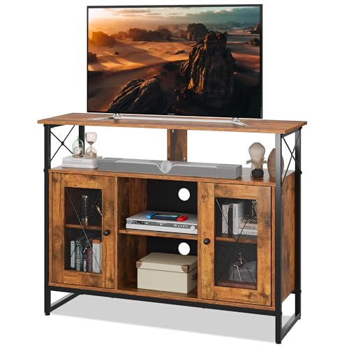 WLIVE TV Stand, TV Unit for 43 Inch TVs, Rustic Brown Tall TV Unit Cabinet 96 x 32 x 77 CM, TV Stand with 2 Doors, Buffet Table, Sideboard, for Living Room, Wooden Industrial TV Console, Rustic Brown