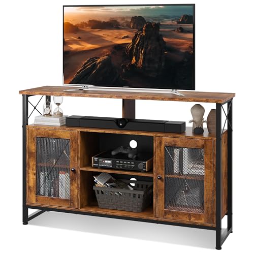 WLIVE TV Stand, TV Unit for 55 Inch TVs, Rustic Brown Tall TV Unit Cabinet 128 x 36 x 82 CM, TV Stand with 2 Doors, Buffet Table, Sideboard, for Living Room, Wooden Industrial TV Console