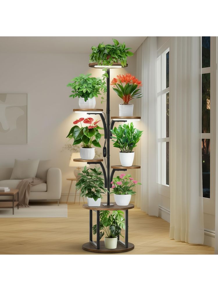 Plant Stand with Grow Light, 145cm Tall Plant Stand, 7 Tier Metal Plant Shelf, Wooden Plant holder, SpaceSaving Corner Flower S