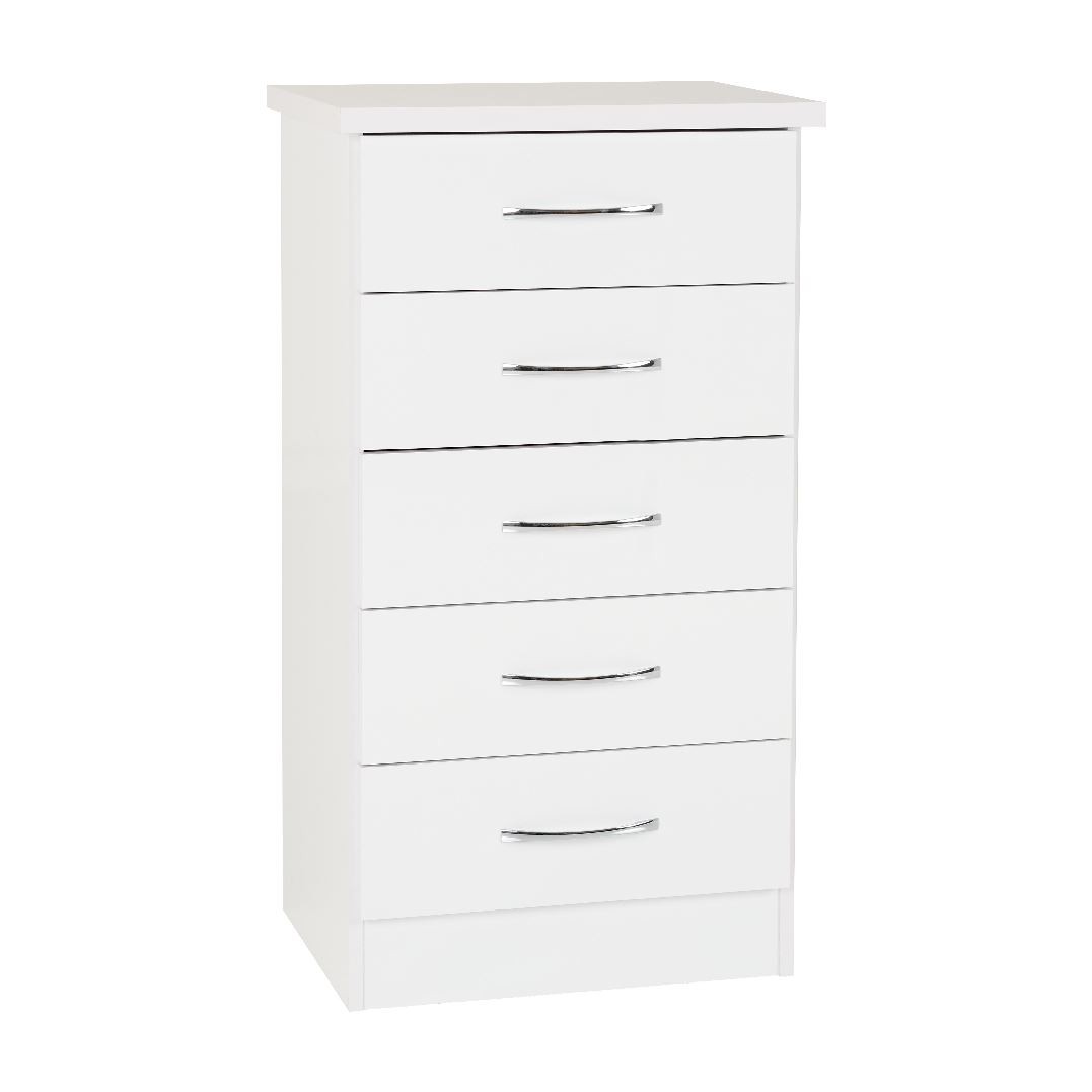 Nevada White Gloss 5 Drawer Tallboy Narrow Chest of Drawers Bedroom Storage