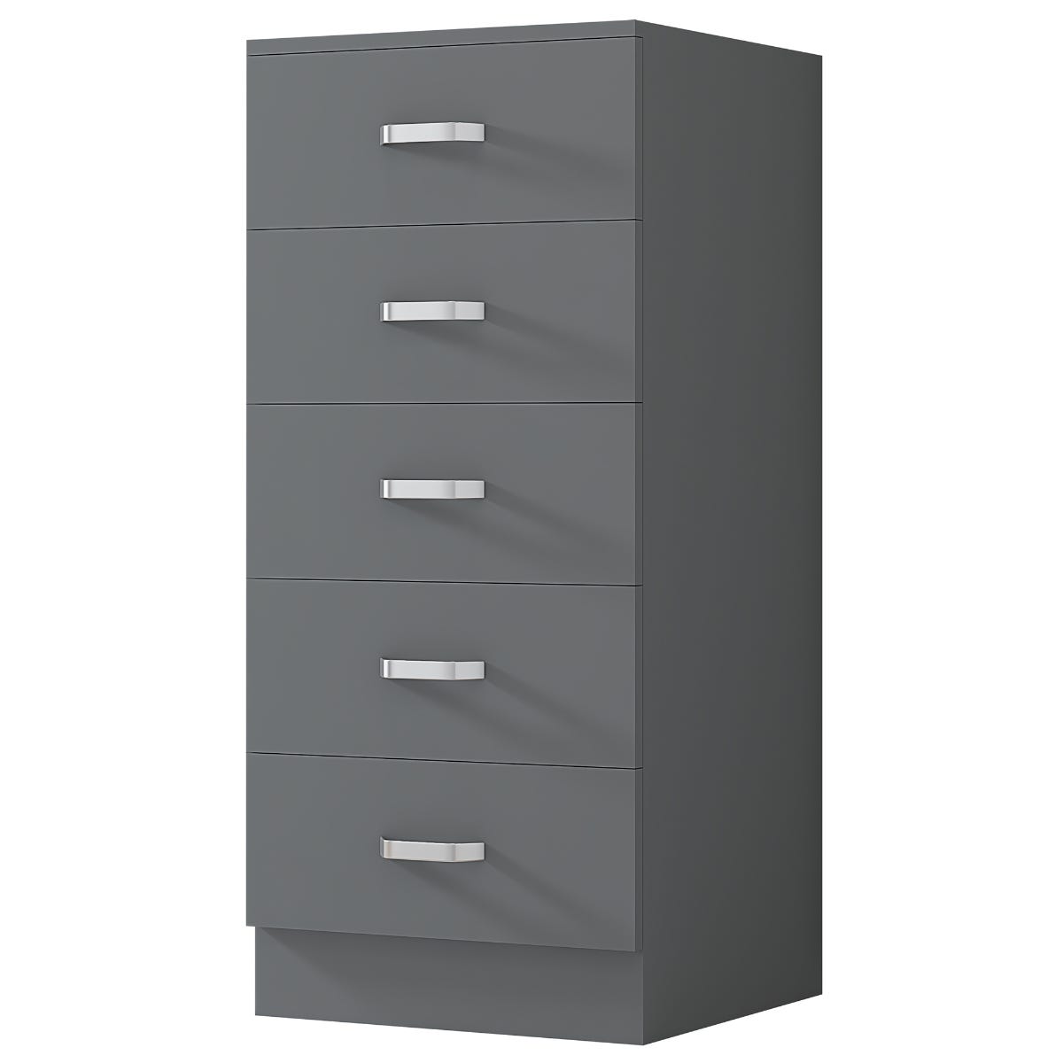 Tunis 5 Drawer Tallboy Slim Chest Of Drawers - Matte Grey, Grey