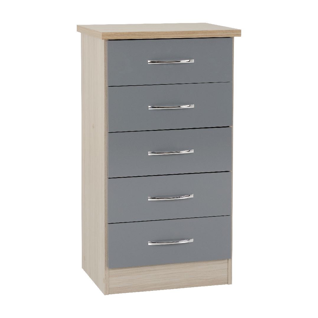 Nevada Grey Gloss 5 Drawer Tallboy Narrow Chest of Drawers Bedroom Storage