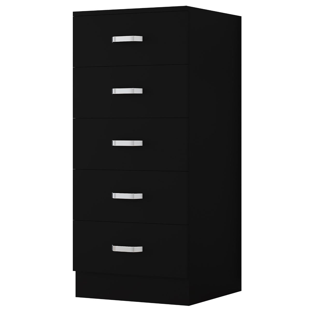 Tunis 5 Drawer Tallboy Slim Chest Of Drawers - Matte Black, Black