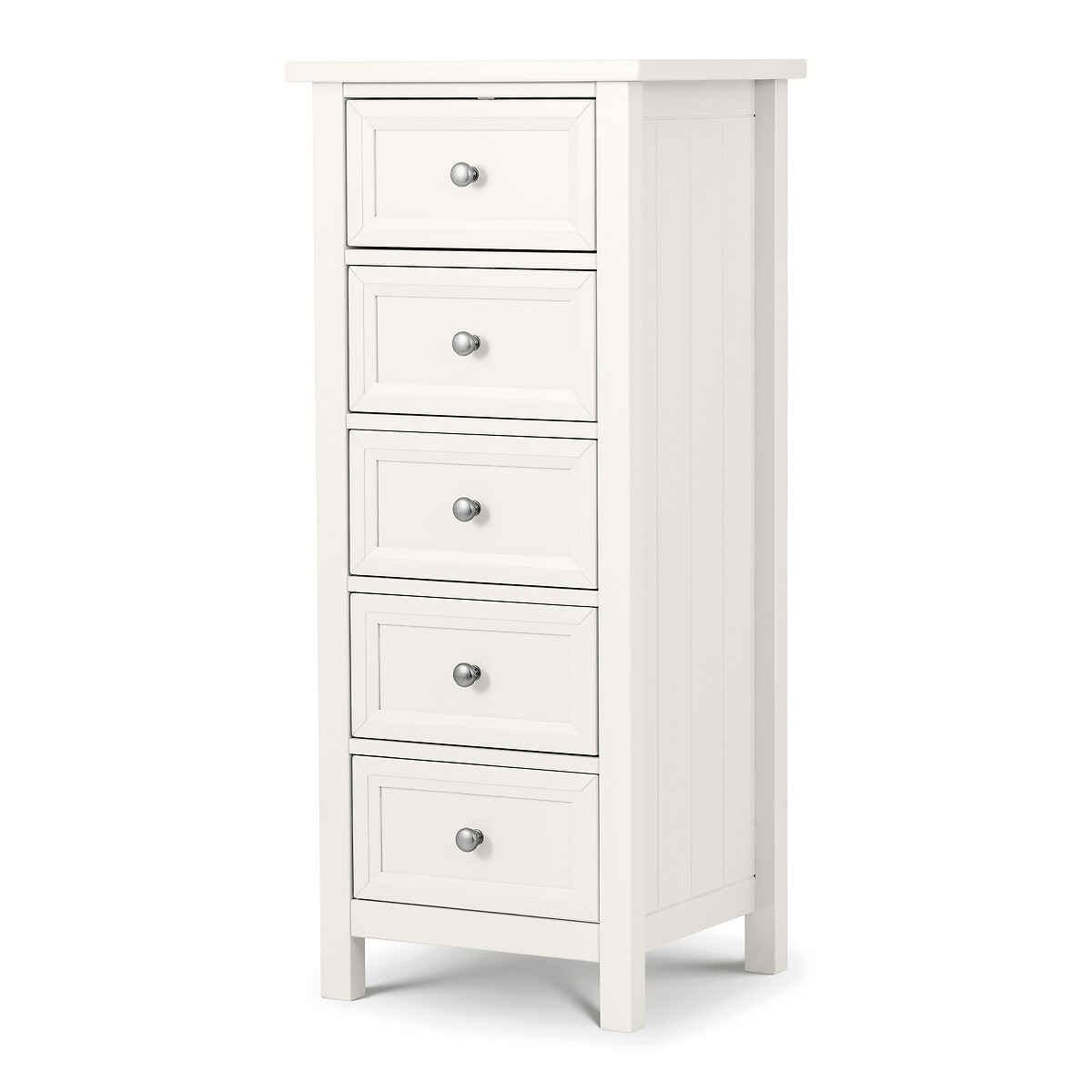 Romance Tallboy 5 Drawer True White Narrow Chest of Drawers ASSEMBLED
