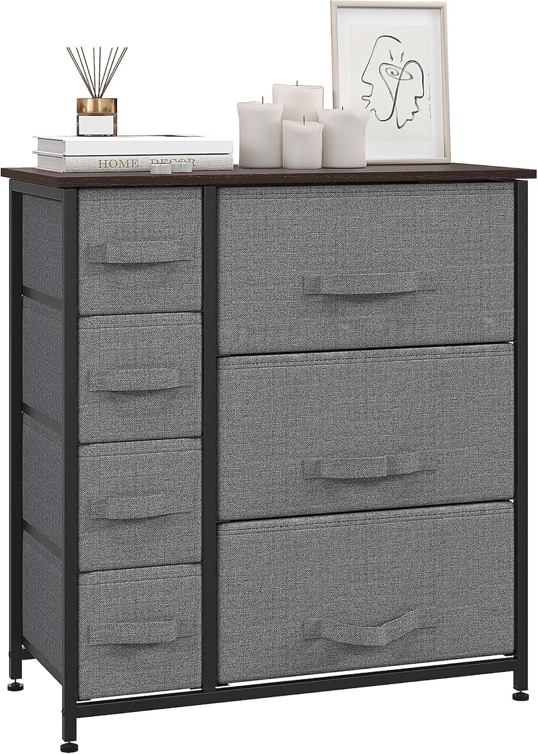 Tall Chest of Drawers Grey Fabric Foldable 7 Drawer Dresser Steel Frame Tallboy