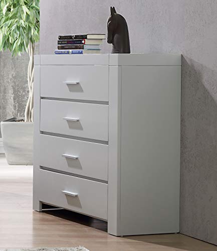 GROF GROFurniture Snow White Chest of Drawers, Painted White Chest of Drawer for Bedroom, 4 Drawer Tallboy Chest, Bedroom Storage Chest, Slim Chest of Drawers, Narrow Storage Drawers
