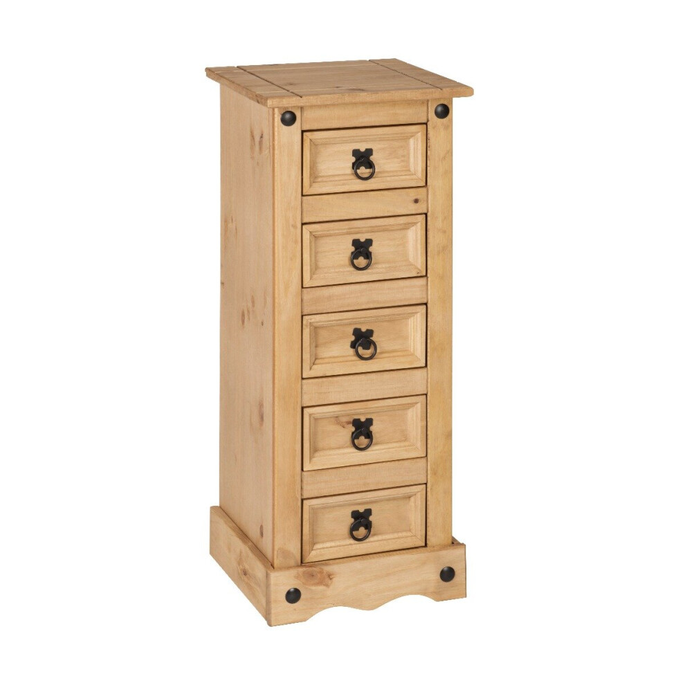 Corona 5 Drawer Narrow Chest of Drawers Tallboy Mexican Solid Pine