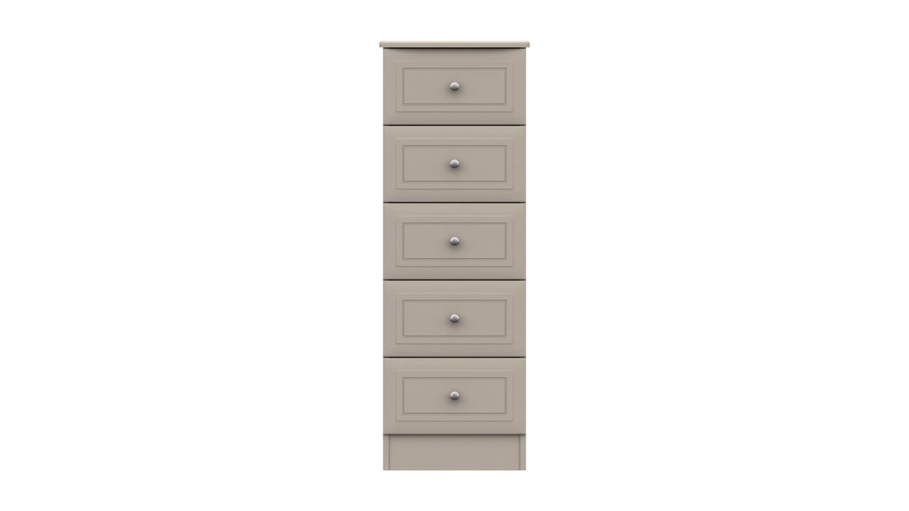 GROFurniture Painted Cashmere Grey Slim Wellington Chest of Drawers, Tallboy, 5 Deep Drawers, Oak Bedroom Furniture, Living room Storage, Fully Assembled Tallboy