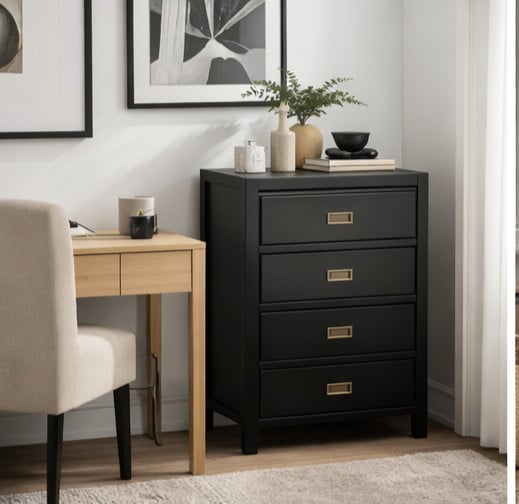 Walker Edison Tallboy Chest of Drawers 4 Storage Drawer Cabinet Black Solid Wood