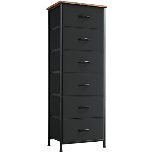 Somdot Tall Chest of Drawers for Bedroom with 6 Fabric Drawers, Tallboy Storage Cabinet for Closet Wardrobe Kids Dorm Living Room Entryway Hallway Laundry, Black Rustic Brown
