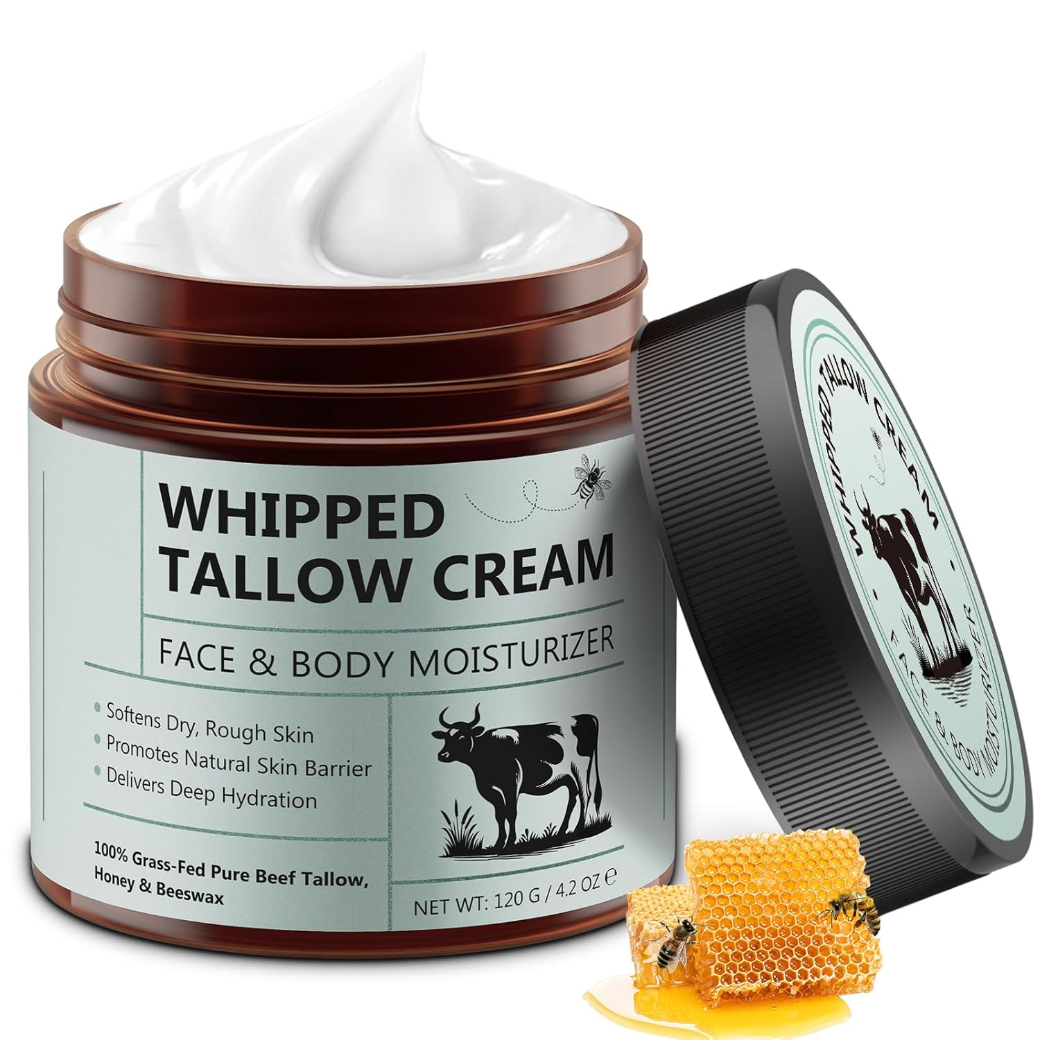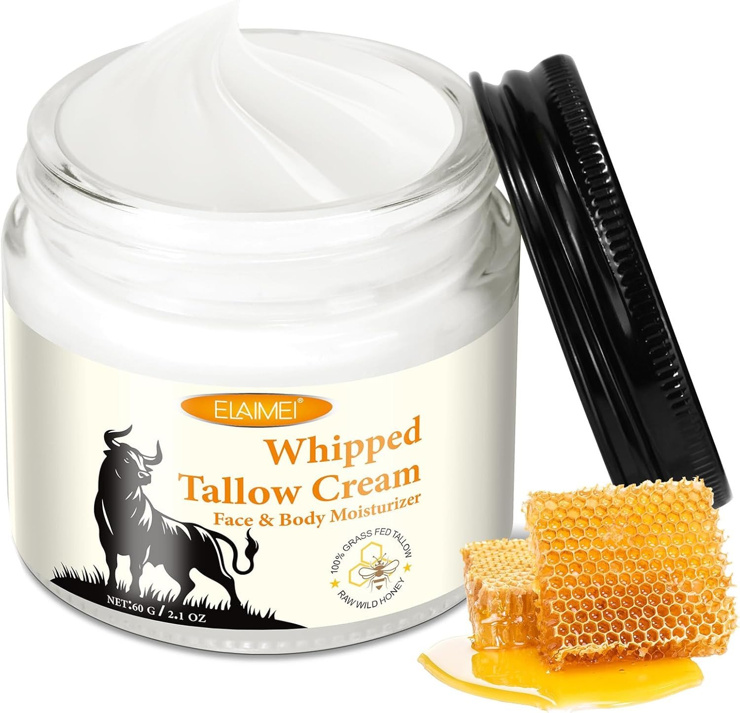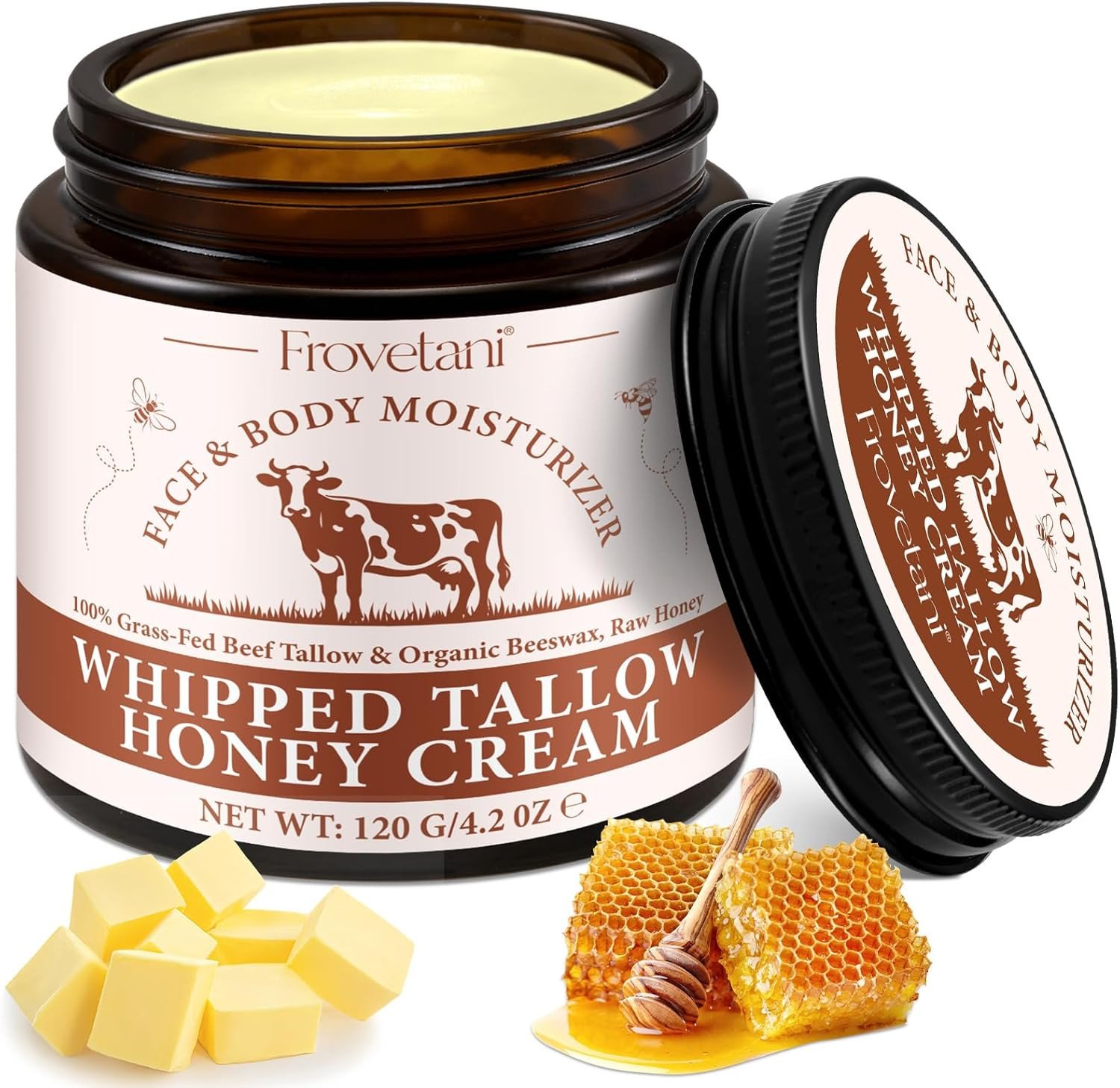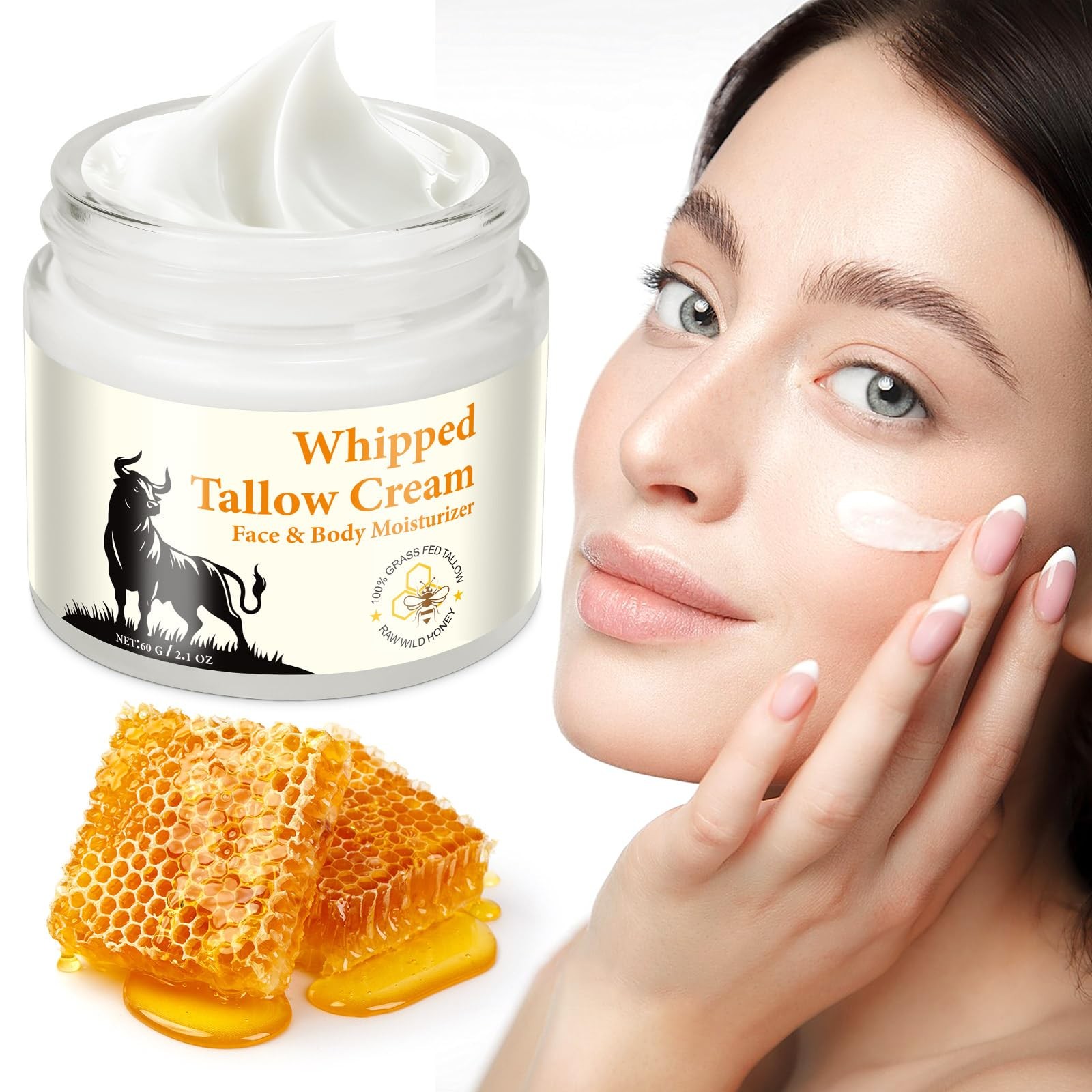 Beef Tallow and Honey Balm for Skin Care, Whipped Tallow Cream for Face & Body,