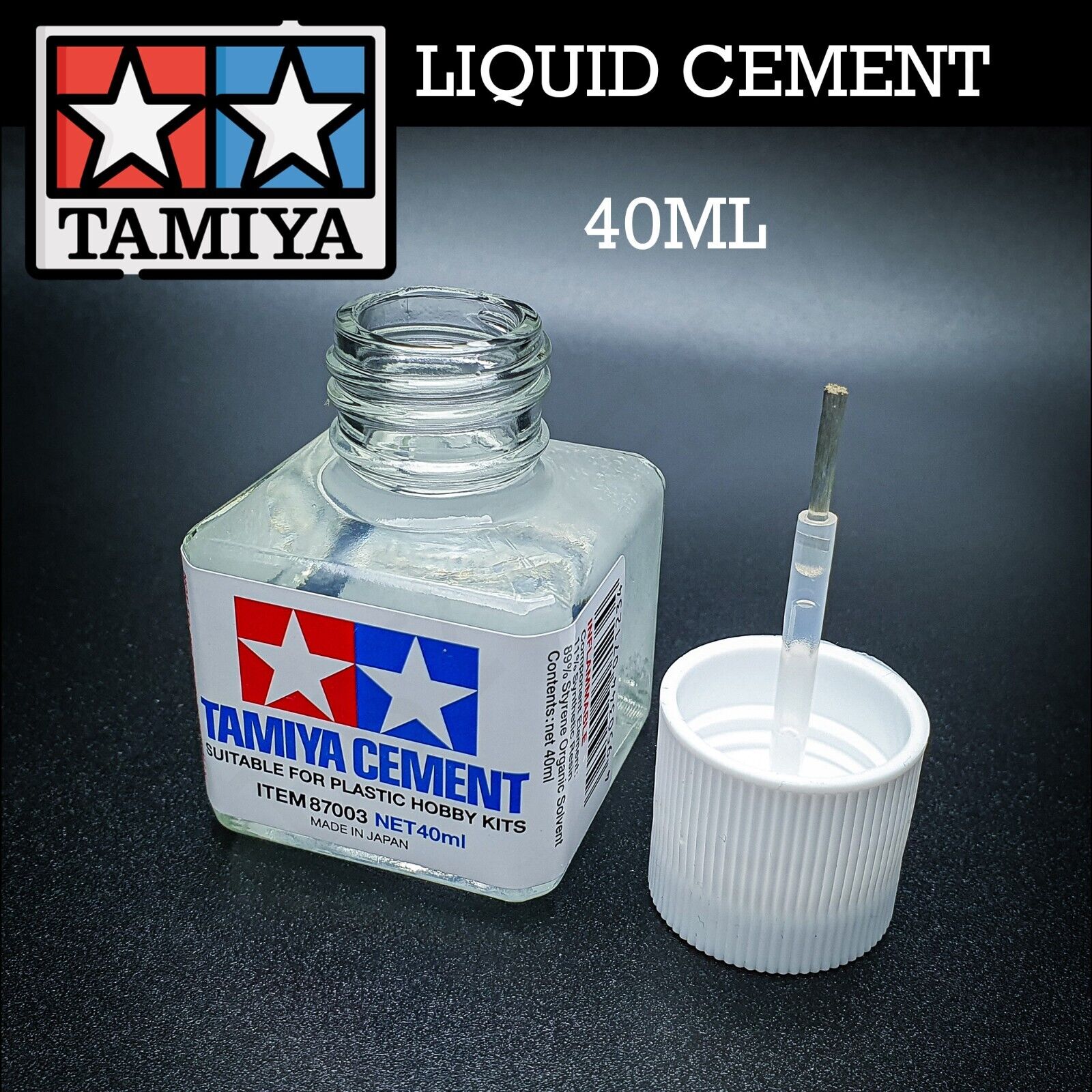 Tamiya LIQUID CEMENT 40ml Plastic Styrene Weld Applicator Brush in Cap 87003