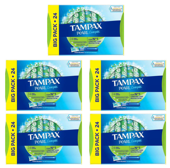 5 x 24 Tampax Pearl Compak Applicator Regular Leak Protect Absorbancy Tampons