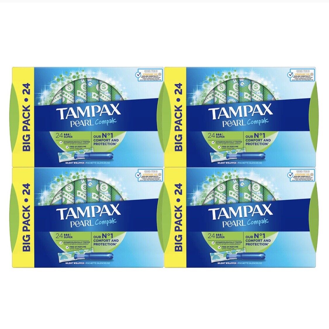 Tampax Pearl Compak Super Tampons - Pack of 4 x 24 New