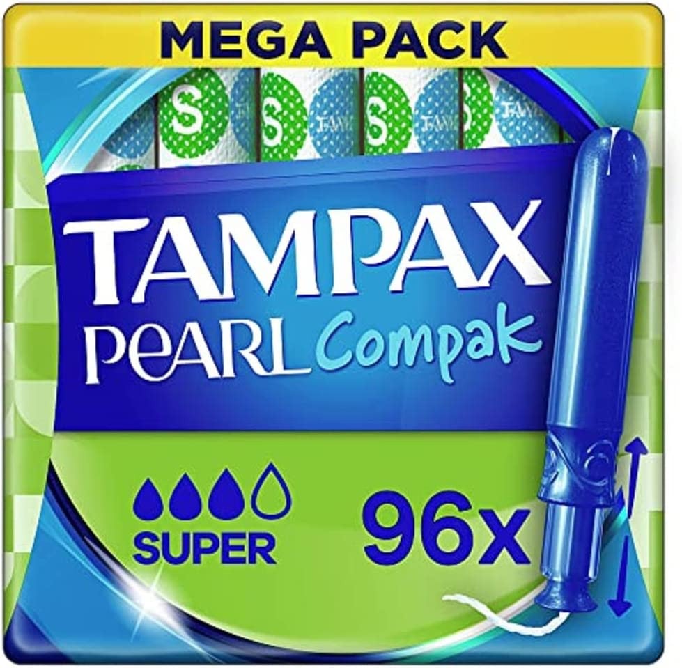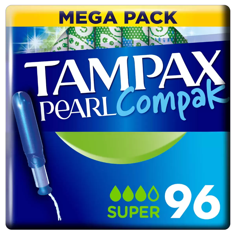 Tampax Pearl Compak Super Tampons with retractable plastic applicator - 96 pack