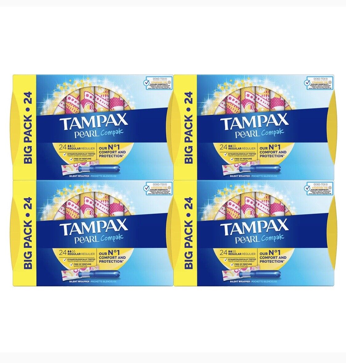 Tampax Pearl Compak Regular Tampons, 96 (4 x 24 Pack) New