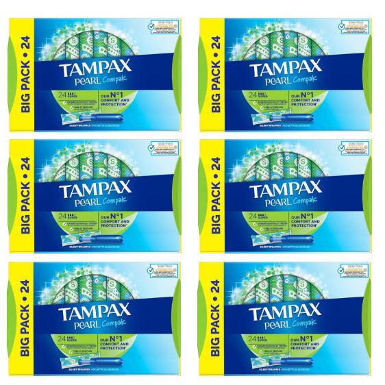 6 x 24 Tampax Pearl Compak Applicator Regular Leak Protect Absorbancy Tampons
