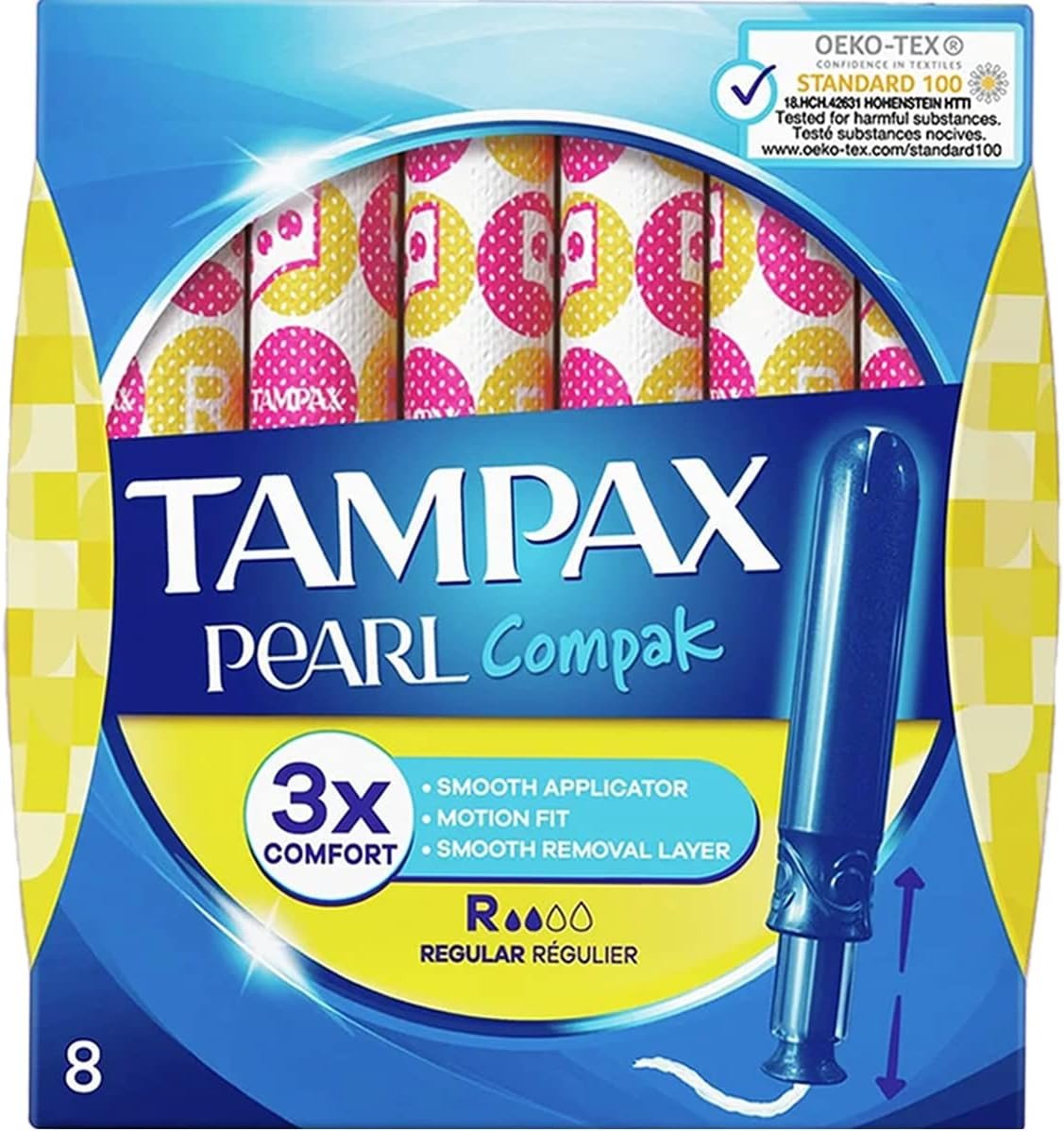Tampax Pearl Compak Regular Tampons Applicator, 8 Each