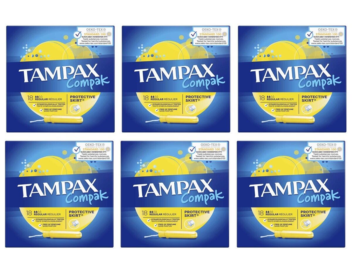 TAMPAX Tampax Compak Regular Tampons With Applicator X18 ( pack of 6 P