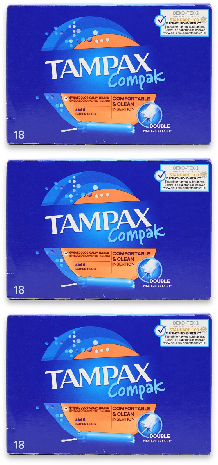 Tampax Compak Super Plus Applicator Tampons 18 Pack X 3